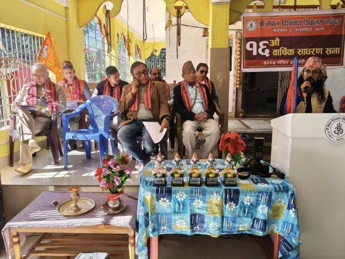 नेपाल विश्वनाथ शिवालय मन्दिर समितिका अध्यक्ष लक्ष्मण बस्नेतको अध्यक्षतामा आयोजित सभामा विशेष अतिथिका रुपमा मेचीनगर वडा नम्बर ६ का वडा अध्यक्ष ललित बहादुर तामाङ, प्रज्ञा प्रतिष्ठानका पूर्व सदस्य सुभद्रा अर्याल, लेखक तथा पत्रकार सन्तोष आचार्य, महाकाल मेचीनगर युवा अध्यक्ष विकाश अधिकारी, जेन्जी मेचीनगर अध्यक्ष रितिक थापा लगायतले शुभकामना व्यक्त गरेका थिए । सनातन धर्म मेचीनगर अध्यक्ष नेत्र भट्टराईले स्वास्ती बाचन गर्नु भएको थियो भने मन्दिर समितिकी उपाध्यक्ष बिष्णुमाया उप्रेतीले स्वागत गर्नु भएको थियो । मन्दिर समितिका सचिव गोपाल शिवाकोटीको सञ्चालन गरेको कार्यक्रममा पन्चमुखी हनुमान मन्दिर अध्यक्ष आनन्द अग्रबाल,आधुनिक बचत तथा ऋण सहकारी संस्थाका अध्यक्ष कमल थापा, प्रेस क्लव मेचीनगर सचिव प्रविण अधिकारी, पुर्बी नेपाल यातायात व्यवसायी प्रा लिका प्रतिनिधी जयप्रसाद तामाङ , ब्राह्मकुमारी राजयोग प्रतिनिधी रमाकुमारी, काँकरभिट्टा माविका अध्यक्ष भुपाल शिवाकोटी, सशस्त्र प्रहरी सुरक्षा बेश क्याम्प काँकडभिट्टा प्रतिनिधी रुद्र श्रेष्ठ, लायन्स क्ल्व मेचीनगरका अध्यक्ष दिपक कार्की, नव दुर्गा कृतन मण्डली अध्यक्ष भोज कुमारी बुढाथोकी , ईट्टाभट्टा बजार व्यवस्थापन अध्यक्ष खडानन्द भण्डारी , लक्ष्मीनारायण कृतन मण्डली भानु टोल अध्यक्ष बेदमाया प्याकुरेल, ॐ नमः शिवाय कृतन मण्डलीका अध्यक्ष मित्रलाल कट्टेल , सल्लाहकार मुक्तिनाथ पौडेल, क्याप्टेन गोपीलाल लिम्बू लगायतको उपस्थिति रहेको थियो ।